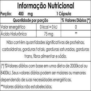 Ácido hialurônico 75mg por cápsula 1 ao dia 60 cápsulas duom - descrição - O ácido hialurônico é uma substância naturalmente presente no organismo humano, uma molécula de açúcar que atrai a água e pode atuar como um lubrificante e absorver choques em partes móveis do corpo como as articulações. Do ácido hialurônico no nosso corpo, 56% dele está na pele, onde ele atua preenchendo o espaço entre as células, o que a mantém lisa, elástica e bem hidratada. O ácido hialurônico ha é um tipo de polissacarídeo composto por dissacarídeos repetidos de ácido d-glucurônico e n-acetil- d-glucosamina. O ha é dispensado em forma de sal de hialuronato. Essa substância é encontrada principalmente em tecidos conjuntivos, como cartilagem, ossos, pele etc. - benefícios - - combate às rugas e linhas de expressão; - tem alto poder de hidratação; - diminui sinais de envelhecimento; - auxilia nas dores de articulações. - sugestão de uso - Tomar 1 cápsula ao dia. - tabela nutricional - Informação nutricional Anexo nas imagens - composição - Ácido hialurônico e antiumectante silicato de magnésio. Composição da cápsula: gelatina e água. - recomendações - Este produto não é um . O ministério da saúde adverte: não existem evidências científicas comprovadas de que este alimento previna, trate ou cure doenças. Não exceder a recomendação diária de consumo indicada na embalagem. Mantenha fora do alcance de crianças. Este produto não é indicado para gestantes, nutrizes mães que amamentam e crianças. Produto destinado a pessoas acima de 19 anos. -conservação-: Conserve ao abrigo de luz, calor e umidade excessiva e com a embalagem fechada. Depois de aberto consumir em até 90 dias. - dados técnicos - Marca - duom. Fabricante - mm laboratório duom eirele. Conteúdo líquido por frasco - 60 cápsulas. Conteúdo líquido total - 60 cápsulas. Rendimento por frasco - 60 porções/doses. Rendimento total - 60 porções/doses. Peso por cápsula - 400mg. Peso líquido por frasco - 24g. Peso líquido total - 24g. Peso bruto por frasco - 50g. Peso bruto total - 50g. Peso aproximado produto + embalagem - 200g. Código de barras ean - 7898665751145. Registro ANVISA- dispensado de registro de acordo com a resolução da rdc 27/2010 e rdc 240/2018 da anvisa. Dimensões do produto - largura: 7 cm; altura: 12,5 cm; comprimento: 7 cm. Dimensões da embalagem/pacote - largura: 13 cm; altura: 7 cm; comprimento: 16 cm. - itens do anúncio - - 1 unidade do produto: Ácido hialurônico 75mg por cápsula 1 ao dia 60 cápsulas duom Total - 60 cápsulas. Ean: 7898665751145