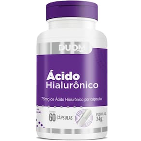 Ácido hialurônico 75mg por cápsula 1 ao dia 60 cápsulas duom - descrição - O ácido hialurônico é uma substância naturalmente presente no organismo humano, uma molécula de açúcar que atrai a água e pode atuar como um lubrificante e absorver choques em partes móveis do corpo como as articulações. Do ácido hialurônico no nosso corpo, 56% dele está na pele, onde ele atua preenchendo o espaço entre as células, o que a mantém lisa, elástica e bem hidratada. O ácido hialurônico ha é um tipo de polissacarídeo composto por dissacarídeos repetidos de ácido d-glucurônico e n-acetil- d-glucosamina. O ha é dispensado em forma de sal de hialuronato. Essa substância é encontrada principalmente em tecidos conjuntivos, como cartilagem, ossos, pele etc. - benefícios - - combate às rugas e linhas de expressão; - tem alto poder de hidratação; - diminui sinais de envelhecimento; - auxilia nas dores de articulações. - sugestão de uso - Tomar 1 cápsula ao dia. - tabela nutricional - Informação nutricional Anexo nas imagens - composição - Ácido hialurônico e antiumectante silicato de magnésio. Composição da cápsula: gelatina e água. - recomendações - Este produto não é um . O ministério da saúde adverte: não existem evidências científicas comprovadas de que este alimento previna, trate ou cure doenças. Não exceder a recomendação diária de consumo indicada na embalagem. Mantenha fora do alcance de crianças. Este produto não é indicado para gestantes, nutrizes mães que amamentam e crianças. Produto destinado a pessoas acima de 19 anos. -conservação-: Conserve ao abrigo de luz, calor e umidade excessiva e com a embalagem fechada. Depois de aberto consumir em até 90 dias. - dados técnicos - Marca - duom. Fabricante - mm laboratório duom eirele. Conteúdo líquido por frasco - 60 cápsulas. Conteúdo líquido total - 60 cápsulas. Rendimento por frasco - 60 porções/doses. Rendimento total - 60 porções/doses. Peso por cápsula - 400mg. Peso líquido por frasco - 24g. Peso líquido total - 24g. Peso bruto por frasco - 50g. Peso bruto total - 50g. Peso aproximado produto + embalagem - 200g. Código de barras ean - 7898665751145. Registro ANVISA- dispensado de registro de acordo com a resolução da rdc 27/2010 e rdc 240/2018 da anvisa. Dimensões do produto - largura: 7 cm; altura: 12,5 cm; comprimento: 7 cm. Dimensões da embalagem/pacote - largura: 13 cm; altura: 7 cm; comprimento: 16 cm. - itens do anúncio - - 1 unidade do produto: Ácido hialurônico 75mg por cápsula 1 ao dia 60 cápsulas duom Total - 60 cápsulas. Ean: 7898665751145