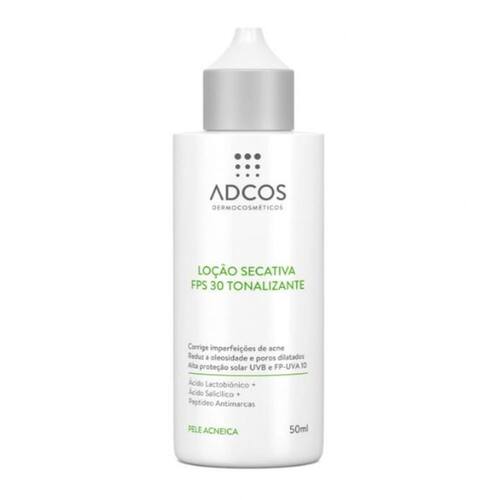 Acne Solution Adcos Loção Secativa Tonalizante FPS 30 50ml A Loção Secativa FPS 30 Tonalizante possui ativos clássicos da dermatologia em sua composição, ideais para o tratamento de redução da acne, a