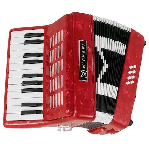 O Acordeon Michael ACM0822 e instrumento musical de formato classico baseado nos modelos italianos mais tradicionais. Com acabamento na cor vermelha com brilho perolado, esta sanfona e muito bonita ira encantar desde as criancas aos adultos.