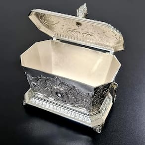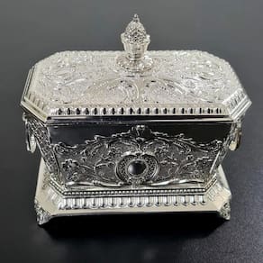 Açucareiro Acabamento Fino Em Metal Indiano 17 X 15 Açucareiro de Metal com acabamento fino 17x15 Luxuoso açucareiro fabricado em metal. Peça super resistente e de excelente qualidade garantindo sempre um alimento mais saudável. Seu design moderno, de acabamento brilhante, traduz praticidade e requinte para o seu dia a dia. Um toque de charme em sua mesa. Medidas: Altura total: 15 cm Comprimento: 17 cm Largura: 12 cmMaterial: MetalCor: Prata Produto importado REF: Q1991