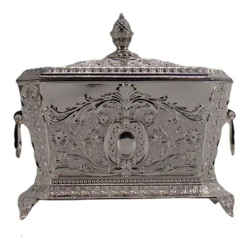 Açucareiro Acabamento Fino Em Metal Indiano 17 X 15 Açucareiro de Metal com acabamento fino 17x15 Luxuoso açucareiro fabricado em metal. Peça super resistente e de excelente qualidade garantindo sempre um alimento mais saudável. Seu design moderno, de acabamento brilhante, traduz praticidade e requinte para o seu dia a dia. Um toque de charme em sua mesa. Medidas: Altura total: 15 cm Comprimento: 17 cm Largura: 12 cm Material: Metal Cor: Prata Produto REF: Q1991