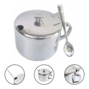 Açucareiro Com Alça E Colher Em Aço Inox 450ML -