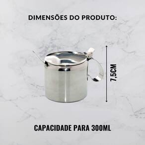 Açucareiro com tampa e colher inox 300 ml Açucareiro com tampa e colher 300ml inox. - ad apresentamos o açucareiro em inox, uma adição elegante e prática para a sua mesa de café ou chá. Com design sofisticado, capacidade de 300 ml e inclusão de colher, este açucareiro oferece estilo e funcionalidade para adoçar suas bebidas favoritas. Adoce seus momentos com elegância usando o açucareiro ad, uma fusão perfeita de design requintado e funcionalidade incomparável. Projetado para adicionar um toque de sofisticação à sua mesa, este açucareiro não é apenas um recipiente, mas uma declaração de estilo da marca ad. contém: 1 peça. cor: prata inox. composição: aço inox. medidas do açucareiro: 11,0cm x 7,5cm x 8,5cm comprimento x largura x altura peso líquido: 0,144 gramas. medidas da colher: 13,8cm x 3,0cm x 1,4cm comprimento x largura x altura peso líquido: 0,25 gramas. cuidados: lave com uma esponja macia e detergente neutro, evite usar materiais ou produtos abrasivos que possam danificar o material. Marca: Tesla Store