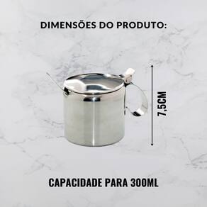 AÇUCAREIRO COM TAMPA E COLHER 300ML INOX. - AD Apresentamos o Açucareiro em Inox, uma adição elegante e prática para a sua mesa de café ou chá. Com design sofisticado, capacidade de 300 ml e inclusão de colher, este açucareiro oferece estilo e funcionalidade para adoçar suas bebidas favoritas. Adoce seus momentos com elegância usando o Açucareiro AD, uma fusão perfeita de design requintado e funcionalidade incomparável. Projetado para adicionar um toque de sofisticação à sua mesa, este açucareiro não é apenas um recipiente, mas uma declaração de estilo da marca AD. Contém: 1 Peça. Cor: Prata inox. Composição: Aço inox. Medidas do açucareiro: 11,0cm x 7,5cm x 8,5cm (comprimento x largura x altura) Peso líquido: 0,144 gramas. Medidas da colher: 13,8cm x 3,0cm x 1,4cm (comprimento x largura x altura) Peso líquido: 0,25 gramas. Cuidados: lave com uma esponja macia e detergente neutro, evite usar materiais ou produtos abrasivos que possam danificar o material. Marca: TESLA STORE