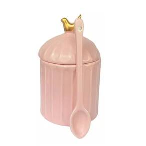Açucareiro Ceramica Colibri C/ Colher Rosa 7x10,5cm Wolff