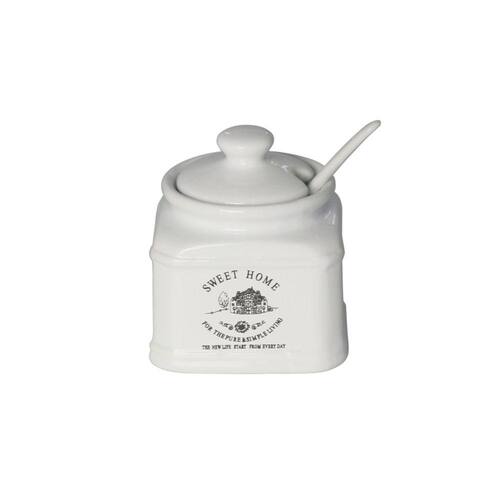 • 01 Açucareiro de Cerâmica com Colher e Tampa Sweet Home