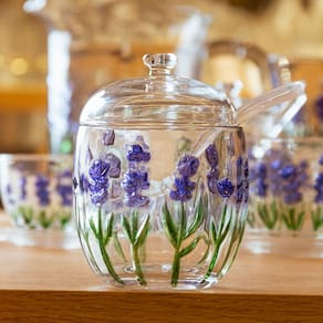 O Açucareiro com Colher e Tampa da Lyor Lavanda Hand Painting em Cristal é uma peça encantadora que vai trazer um toque de sofisticação à sua mesa. Com um design delicado, pintado à mão, ele combina elegância e funcionalidade, mantendo o açúcar fresco e bem armazenado.