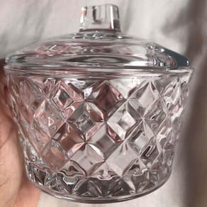 Garantia: 90 dias / Peso: 0,424kg / Cor predominante: transparente / Referência: 7899768012171 Dimensões sem a tampa: 10cm (D) x 6,5cm (A). Dimensões da tampa: 10cm (D) x 4cm (A). Cuidados: lavar com detergente neutro, esponja macia e secar imediatamente. Não lavar em máquinas, não utilizar produtos químicos. Capacidade: aproximadamente 230g de açúcar. Material: cristal.