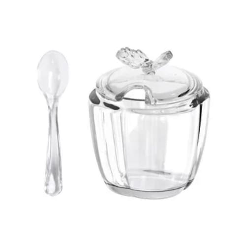 Açucareiro de vidro com colher butterfly 8,5x8,5x11cm Detalhes do produto