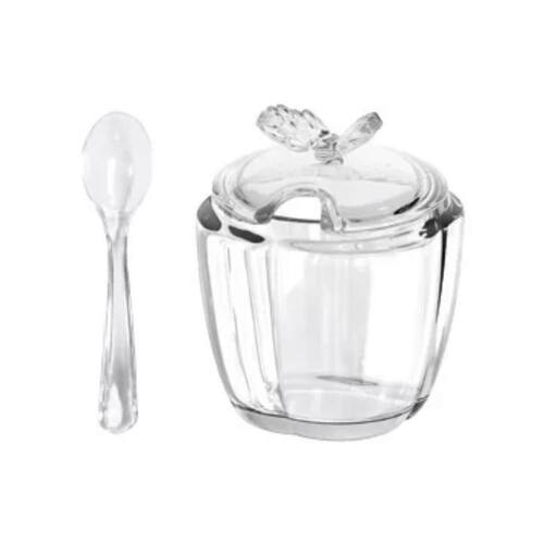Açucareiro de vidro com colher butterfly 8,5x8,5x11cm Detalhes do produto