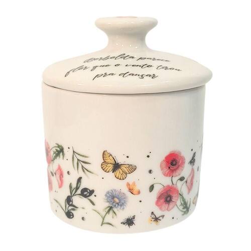 Açucareiro Porcelana Decorado Decalque Mesa Posta Cozinha Elegante Charme Delicado Só Art's