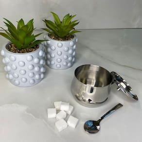 O Açucareiro Premium em Inox, com capacidade de 350 ml e acompanhado de tampa e colher, é uma peça refinada e prática para adicionar um toque elegante à sua mesa de café ou chá. Este açucareiro é projetado para oferecer funcionalidade, durabilidade e um design sofisticado.
