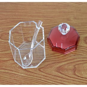 AÇUCAREIRO SEXTAVADO COM COLHER E TAMPA EM ACRÍLÍCO 250ML- MG5117A