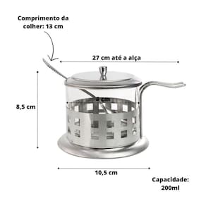 AÇUCAREIRO VIDRO E INOX COM COLHER - 200 ML - NS1369.