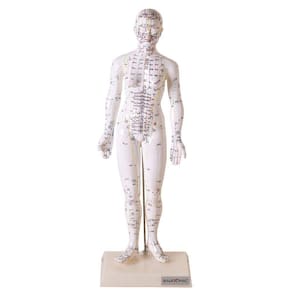 Composto por: Modelo feminino de 50cm com pontos de aplicação, chacras e meridianos para estudo da acupuntura.