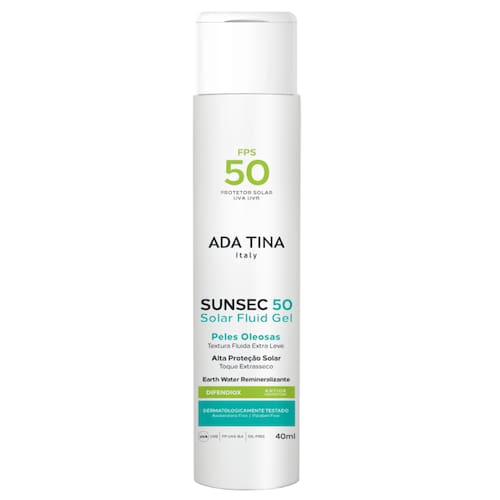 Ada Tina Sunsec Gel Fluid FPS 50 40ml é um protetor solar que confere alta proteção solar antimelasma, com exclusiva textura gel fluida extra leve e toque extra seco, indicado para todos os tipos pele, especialmente as peles mais oleosas, acneica e poros dilatados. Rico em Difendiox e peptídeos colagênicos, que provovem alta ação antioxidante.