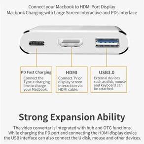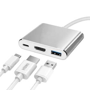 Adaptador 3 In 1 Type-C Para Hdmi 4K, Usb 3.0 - Au-596 - Adaptador Type-C para HDMI e USB