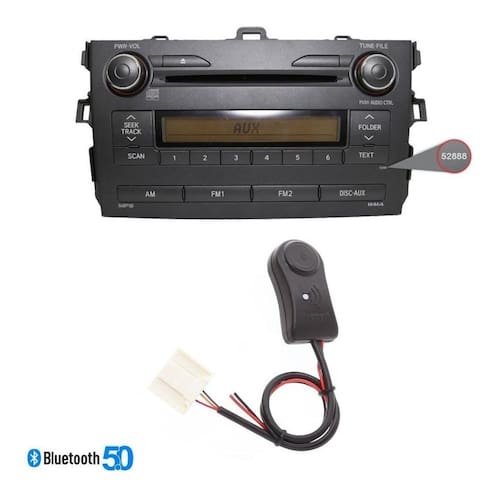 ligue seu celular smartfone e use spotify, deezer entre outros, diretamente no som do seu carro, o funcionamento é muito simples e não precisa de fio. É muito importante saber se o seu rádio é o 52888 como no anúncio. Características: - modelo: cb61 - compatível: toyota rádio 52888 - código interno: bt9000x - versão: 5. 0 - frequência: 2. 402 2. 480ghz - potência: 4dbm - receber sensibilidade: -82dbm - nível de saída de linha: cerca de 150mv rms - distância: 10 metros - taxas de dados: até 3 mbps - taxa de transferência de dados: 115200bps - interface: áudio - perfis: a2dp v1. 2 - tensão de alimentação: 5 a 13,8v - consumo atual ligado : menos de 55ma - consumo atual standby : 10ma - tamanho: 50 x 28 x 18 mm - peso: 50 gramas
