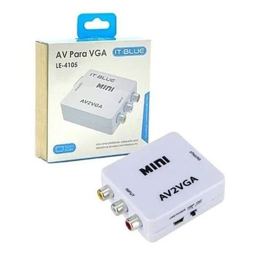 Conversor AV2 para VGA - Ideal para conectar video game ao monitor do pc Diversas outras aplicações que necessitem entrada AV e saída VGA.Especificaçõesdetecta e converte automaticamente Largura de banda de frequência: 165 MHzPorta de entrada : 1 x AVPorta de saída: 1 x VGAFonte de alimentação USBDimensões: 66 x 55 x 20 mmPossui saída P2 para fone de ouvido ou caixinha de som.