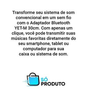 Transforme seu sistema de som convencional em um sistema de som sem fio com o Adaptador Bluetooth YET-M 30cm. Com apenas um clique, você pode transmitir suas músicas favoritas diretamente do seu smartphone, tablet ou computador para sua caixa de som ou sistema de som. Com cabo P2 de 30cm, você tem flexibilidade para posicionar seu dispositivo de forma conveniente. Além disso, o adaptador tem uma qualidade de som cristalina e sem interrupções, para que você possa desfrutar de sua música como nunca antes. Tags: Adaptador Bluetooth, de Música, Cabo P2, Alta Qualidade, Sistema de Som, Sem Fio, Transmissão de Música. IMAGENS MERAMENTE ILUSTRATIVAS Homologação Anatel: 018082113710 Marca: Não Informado Ean: 7898704415748