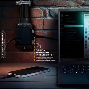 Sua estrutura modular permite uma organização mais eficiente dos cabos e aparelhos conectados, sem bloqueios entre as entradas. Isso significa que você pode utilizar todos os pontos ao mesmo tempo, sem desperdício de espaço ou necessidade de múltiplos adaptadores.