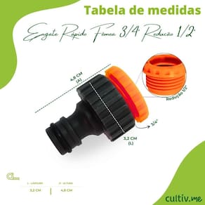 Adaptador Fêmea Com Rosca 3/4 Redução 1/2 Engate Rápido JAPIDescrição * Adaptador fêmea com rosca de 3/4" e bucha de redução para 1/2" em plástico para jardim é um item indispensável na utilização de mangueiras. * Ele possui redução que permite que o adaptador se encaixe com perfeição às torneiras com bico de menor tamanho.* Unindo a rede de água aos pontos de saída com muito mais eficácia. Características * Produto fabricado com matéria-prima de alta qualidade proporcionando uma irrigação precisa e confiável. * Adaptador com rosca para torneira de 3/4" e redução de 1/2". * Conexão para o engate rápido da mangueira. * Altura: 4,80 cm * Largura: 3,20 cm * Comprimento: 3,20 cm * Peso: 12g Informações/Dicas/Usos * O adaptador faz a ligação do sistema com a rede de água e com os pontos de saída. Anúncio referente ao conector fêmea 3/8" com bucha de redução para 1/2". Demais imagens ilustram tipos de aplicação. A Japi comercializa uma ampla llinha de produtos que atendem diversas necessidades, prezando por qualidade de satisfaçao deste de 1993. Nós da CULTIV.ME trabalhamos desde 2013 para trazer os melhores produtos ao alcance de todos. CULTIV.ME o verde que faltava!