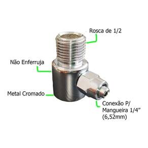 O adaptador possui entrada e saída de 1/2", mais uma saída lateral de 1/4" que permite a instalação do seu purificador de água. Facilidade e qualidade na sua instalação.