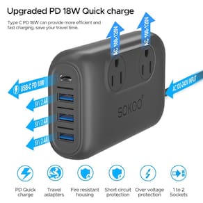 Adaptador de alimentação SOKOO International Conversor de 220 V para 110 V com proteção integrada para garantir desempenho e segurança superiores. Uso mundial Com o conversor de tensão SOKOO converta tensão externa de 90-220V para 110-120V e liga seu dispositivo eletrônico dos EUA com segurança. Carregue rapidamente seus eletrônicos e conversor de energia inteligente Conversor de energia de 230 watts com dois plugues padrão dos EUA e quatro 5V/2,4A (2,4 A por porta máx.) capaz de carregar simultaneamente vários para laptop, bomba de leite, máquina CPAP, escova de dentes elétrica, ventilador, nebulizador, console de jogos, Kindle, TV, leitores de DVD, portáteis, luzes, iPad e outros dispositivos eletrônicos. Viaje em movimento. Ao viajar entre regiões com tensões diferentes, você precisará de um adaptador de plugue e um conversor de tensão para usar com segurança seus valiosos dispositivos quando você for para o exterior. - Uso mundial: o conversor de tensão SOKOO vem com um cabo de alimentação da UE destacável de 1,2 m e 5 soquetes diferentes para (Reino Unido/AU/IN/UE), converte de 220/240V para 110/120V e pode ser utilizado com eletrônicos dos EUA em Antígua e Barbuda, Bulgária, Camboja, Canadá, China, Costa Rica, Dubai, Reino Unido, Fiji, Alemanha. y, Guam, Haiai. Ti, Hong Kong, Irlanda, Japão, Coreia do Norte, Coreia do Sul, Malásia, Nova Zelândia, Peru, Porto Rico, Singapura, Egito, Turquia, Reino Unido e mais de 150 países - Produto patenteado: Número de patente US10270355B1, o conversor de energia SOKOO é compatível com alisadores de cabelo, modelador de cachos, barbeador elétrico, aparador de barba, laptop, escova de dentes elétrica, atomizador, Xbox, TV, iPad, iPhone, Samsung, outro celular, alto-falante Bluetooth, bateria da câmera e outros dispositivos eletrônicos, um lembrete amigável *Não use secadores de cabelo e outros eletrodomésticos que excedam 230 watts de uso doméstico eletrodoméstico. - Conversor de energia internacional 6 em 1: nosso conversor de energia de viagem é uma tomada externa em 2 tomadas CA dos EUA (até 230W), 1 USB-C (até 5V/3A, PD18W) e 3 portas USB-A (até 5V/2,4A, 12W), que permite carregar até 6 dispositivos ao mesmo tempo, atendendo a várias necessidades de carregamento para sua viagem global. - Segurança e silêncio: o fusível integrado do conversor de tensão e o interruptor termostático desligarão automaticamente em caso de proteção contra surtos, superaquecimento, sobrecorrente, superaquecimento ou curto-circuito para garantir sua segurança. Ventilador silencioso para um sono tranquilo. - Design de viagem: tamanho compacto (4,96 x 2,92 x 1,66 cm) com bolsa de transporte e cabo de alimentação destacável tornam este conversor de energia fácil de embalar e transportar. O pacote inclui (bolsa de viagem, conversor de tensão, cinco plugues, cabo de alimentação da UE, manual do usuário), atendimento on-line ao cliente 24 horas, garantia de 12 meses.