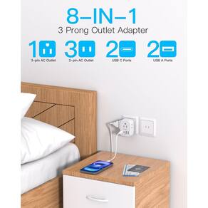 -?Adaptador de alimentação 8 em 1 para o Japão?- O adaptador de viagem japonês fornece 4 tomadas CA para aceitar o plugue padrão norte-americano de 2 ou 3 pinos, no máximo capacidade de até 3250 watts, 250 V/13A; 4 portas USB podem carregar até 5V/3.1A. Permitindo que você carregue 8 dispositivos simultaneamente. Ideal para celular, tablet, laptop e outros carregadores elétricos; este adaptador japonês incorporado protege seus dispositivos contra corrente excessiva, superaquecimento e sobrecarga.