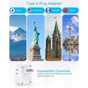IMPORTANTE: Se for um produto elétrico, ele pode ser compatível com uma tomada de 110 volts. Se utilizado fora dos Estados Unidos, pode ser necessário um conversor de voltagem para garantir a operação adequada. Verifique se o produto que você está comprando é elétrico antes de considerar essas informações. Pacote com 2 adaptadores de viagem dos EUA para o Japão, adaptador de alimentação de 20 W para o Japão com 4 saídas, 4 portas USB (2 portas USB C), adaptador de plugue tipo A para a América dos EUA para a China japonesa, Canadá, México, Filipinas, Perú