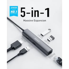Melhore a funcionalidade do seu laptop com o hub USB-C 5 em 1 Anker PowerExpand+. Adicione facilmente 3 portas USB 3.0, 1 HDMI e 1 porta Ethernet com este acessório compacto. Desfrute de transferência rápida de dados, internet estável e suporte de vídeo 4K. Vem com uma garantia de 18 meses e atendimento ao cliente amigável.