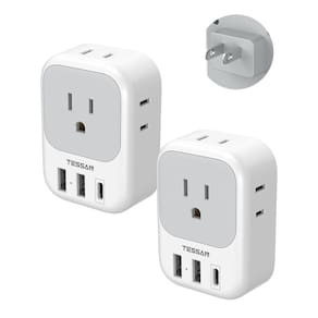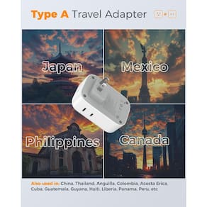 TESSAN Adaptador de 2 pinos para 3 pinos - Adaptador de plugue tipo A: adaptadores japoneses para viagens no México, Canadá, Filipinas, China, Peru, Tailândia, Colômbia, Guatemala, Bolívia, Panamá, Cuba, Porto Rico, Haiti, Libéria, Bahamas, Barbados, etc - Adaptador de alimentação japonês 7 em 1: o adaptador de carregador japonês possui 4 tomadas CA (máximo de 1875 W), 1 USB C (máximo de 3A por porta) e 2 USB A (máximo de 2,4A); o adaptador de tomada japonês pode carregar 7 dispositivos simultaneamente, reduzindo o tempo de espera e não há necessidade de trazer adaptadores extras - Carregamento de velocidade USB C 15W: A saída do adaptador de tomada de viagem USB C do Reino Unido é de 15 W no máximo, carrega rapidamente seu telefone, fones de ouvido e outros dispositivos; o adaptador de plugue dos EUA para o Japão também tem 2 portas USB A para atender às necessidades de carregamento de vários dispositivos - Compacto e portátil: tamanho compacto 8 × 6 × 5,7 cm e leve 98 g; adaptador conversor japonês cabe facilmente em sua bolsa; o adaptador japonês tem design de 4 lados para conectar adaptadores grandes sem bloqueio; sem proteção contra sobretensão, adequado para navios de cruzeiro - Observação: o adaptador de energia de viagem do Japão não é um conversor de tensão, certifique-se de que seu dispositivo suporta tensão dupla de 100 a 250 V; se você planeja usar um secador de cabelo, alisador ou modelador de cachos, certifique-se de que eles suportam tensão dupla