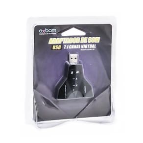 Adaptador de Som USB Externo 7.1 Canais 4 Portas Exbom USOM20 Está placa de som externa USB de 7.1 canais (virtual) é aplicável com USB 2.0 e PlugandPlay, pode ser utilizada em computadores, notebooks e em 3 para ligar fones de ouvido, mas não é aplicável com TVs e outros aparelhos.