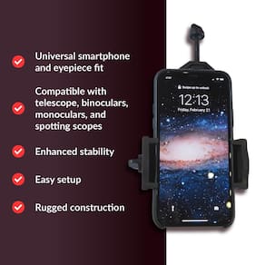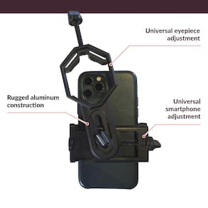 Este é um adaptador de alta qualidade que permite que você conecte seu smartphone aos seus binóculos ou telescópio para facilitar a fotografia. Capture fotos e vídeos de objetos distantes, animais, pássaros, paisagens ou qualquer outra coisa que você queira fotografar. O adaptador digiscópio possui uma estrutura de metal resistente com alças de borracha para manter seu smartphone firmemente no lugar. O adaptador se prende a qualquer ocular binóculo de 25 mm a 48 mm de diâmetro, por isso funcionará com quase todos os binóculos e telescópios de detecção. O suporte de telefone serve para telefones de 56 mm a 100 mm de largura, o que acomodará quase todos os smartphones, mesmo se estiverem em uma capa. - Capture mídia: Transforme seus dispositivos ópticos em uma poderosa ferramenta de fotografia e videografia com este adaptador DigiScoping. Prenda facilmente seu smartphone para capturar fotos e vídeos impressionantes de objetos distantes. O adaptador permite que a câmera do seu dispositivo foque através de um lado de binóculos, telescópios, telescópios ou monóculos, oferecendo experiências de visualização incomparáveis. - Moldura resistente: a durabilidade é fundamental ao manusear óptica de precisão. Este adaptador é construído com uma estrutura de metal robusta para garantir um ajuste seguro e uso prolongado. Os grampos de metal se fixam firmemente a qualquer ocular que varia de 25 mm a 48 mm de diâmetro, fornecendo uma plataforma estável para capturar mídia de alta qualidade. - Ajuste universal: a compatibilidade não é um problema. O suporte de telefone ajustável acomoda smartphones que variam de 56 mm a 100 mm de largura. A maioria dos dispositivos cabe, mesmo com uma capa protetora. Se você estiver usando um smartphone carro-chefe ou econômico, este adaptador oferece um ajuste confortável. - Uso versátil: é mais do que apenas um adaptador binóculo; é uma solução universal de digiscópio. Compatível com telescópios, telescópios, binóculos e monóculos, o design universal deste adaptador o torna incrivelmente versátil. Transforme uma ampla variedade de dispositivos ópticos em sistemas de digiscópio com este adaptador. - Configuração fácil: não são necessárias configurações complicadas ou ferramentas adicionais. O design intuitivo garante uma fixação rápida e direta ao seu dispositivo óptico e smartphone. Com alguns ajustes simples, você está pronto para capturar imagens e vídeos impressionantes, aproveitando ao máximo seus instrumentos ópticos existentes.