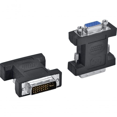 Adaptador VGA fêmea para DVI-I macho permite conectar de um cabo VGA a um dispositivo emissor ou reprodutor de imagem com conexão DVI, geralmente monitores ou projetores;