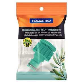 Adaptador Fêmea com Rosca 3/4" e Redução 1/2" em Plástico Tramontina para Jardim é um item indispensável na utilização de mangueiras. Ele possui redução que permite que o adaptador se encaixe com perfeição às torneiras com bico de menor tamanho, unindo a rede de água aos pontos de saída com muito mais eficácia. - Produto fabricado com matéria-prima de alta qualidade proporcionando uma irrigação precisa e confiável.- Adaptador com rosca para torneira de 3/4" e redução de 1/2".- Conexão para o engate rápido da mangueira. Observações - O adaptador faz a ligação do sistema com a rede de água e com os pontos de saída.- Água: pode faltar. Não desperdice.- Para descarte dos produtos e embalagens siga as orientações de reciclagem vigentes. Características Gerais EAN13 7891117006961 DUN14 17891117006968 NCM 3917.40.90 Peso Líquido 0,0120 kg. Peso Bruto 0,0140 kg. Metragem 0,000045 m³. Dimensões Embalagem (Compr. X Larg. X Alt.) 30x 30x 50 mm. Dimensões Produto (Compr. X Larg. X Alt.) 32x 32x 48 mm. Cor 1 009900 Hexa