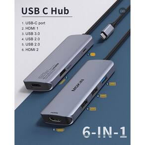 - Adaptador USB C Adaptador HDMI duplo USB C Estação de ancoragem USB C para laptops ows. Converta sua porta usb c em 6 portas: 2 HDMI (4K 30Hz), 1 USB 3.0 e 2 USB 2.0, 100w pd.