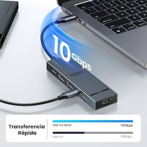 Ugreen revodok pro 10gbps usb c hub hdmi 4k 60hz thief adapter tipo c 3.2 gen 2 pd 100w estação de carregamento compatível com/macbook/pro/air/m3/m2/m1,/,//17/pro/max/air,/galaxy s25 Conectividade 6 em 1 o hub usb c revodok extrai ainda mais potencial da porta usb-c do seu laptop com 1 porta hdmi 4k a 60 hz, 1 porta de carregamento pd de 100w, 2 portas usb-c de 10 gbps e 2 portas usb-a de 10 gbps. Este dock usb c é perfeito para suas necessidades de conectividade com monitores externos e transferência de dados. Dica: certifique-se de que a porta usb c do seu computador/tablet/celular suporte saída de vídeo para que a porta hdmi funcione corretamente. Transferência de dados ultrarrápida de 10 gbps o hub usb c de 10 gbps é equipado com 4 portas usb 3.2 2 usb-c e 2 usb-a com velocidade de transferência de dados ultrarrápida de 10 gbps, 2 vezes mais rápida que o usb 3.0 e 20 vezes mais rápida que o usb 2.0. Perfeito para conectar discos rígidos, leitores de cartão e pen drives, permitindo a transferência de arquivos grandes em segundos. Observação: essas portas de dados não suportam saída de sinal de vídeo nem carregamento. Conecte um monitor externo 4k o hub hdmi usb c suporta a resolução máxima de 4k a 60 hz compatível com versões anteriores de 3840 x 2160 a 30 hz, 2560 x 1440 a 120 hz e 1080p a 144 hz . Você pode duplicar ou expandir o monitor para uma segunda tela maior. Ideal para transmitir vídeos em 4k para uma tela maior ou fazer uma apresentação com um projetor no escritório. Carregamento rápido pd 100w esta docking station usb c oferece até 85w de potência de carregamento se você conectar um carregador de 100w, o hub consome 15w através da porta de carregamento pd, que carrega seu dispositivo host laptop/tablet/celular em alta velocidade. Observação: 1. Não conecte periféricos como disco rígido ou monitor através desta porta pd, pois ela não suporta transferência de dados e vídeo. 2. O carregador de 100w não está incluído. Alta compatibilidade o adaptador multiporta usb c é compatível com/macbook/pro/ m4/m3/m2/m1,/max/pro,/2024 - 2019 ,/macbook/air,/ m4/m3/m2/m1,/2025 - 2020 ,/,/mini/m4,/imac,/xps/17/15/13,/magicbook/16/pro,/thinkbook/14,/asus,/zenbook,/matebook/pro/14/13,/surface/pro/10/9/8,//pro/2024 - 2018,//air/2025 - 2020,/galaxy tab s11/s10/s9 ultra,//17//17/pro//17/pro/max//16/15/series,/galaxy s25/s25+/s25 ultra/s24 series, steam,/deck,/ally,/rog, etc. Homologação anatel nº 12070-21-04423 -marca ugreen -cor cinza espacial -material alumínio, plástico -modelo cm818 p/n 45363 Homologação Anatel: 138632314286