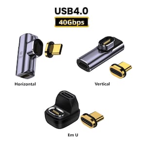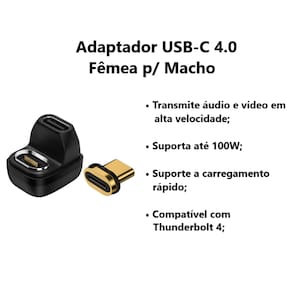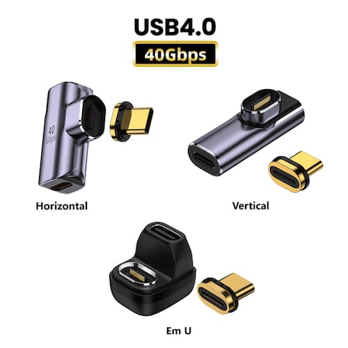 Adaptador Magnético USB-C 4.0 90° 40gbps Macho para Fêmea Áudio Vídeo