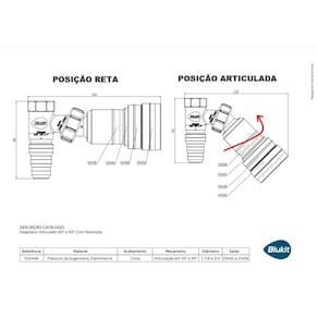 Adaptador articulado 45º ou 90º para máquina de lavar roupa e louça cinza com retenção blukit REF. 030448
