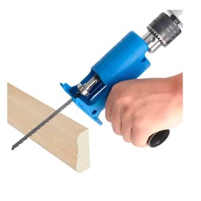 Adaptador para Transformar Furadeira em Serra tico-Tico Adaptador para Transformar Furadeira em Serra tico-Tico Adaptador para Transformar Furadeira em Serra tico-Tico. Para corte com diversos tipos de material: corte de madeira, corte de tubulação de aço, corte de plásticos, etc. - Adaptador para furadeiras de 3/8 e 1/2" - Diâmetro de aperto da haste de conexão: 5-13mm - Diâmetro da haste de conexão: 8mm - Diâmetro de corte: 0-120mm / 0-4.7in - Para corte com diversos tipos de material: corte de madeira, corte de tubulação de aço, corte de plásticos, etc. - Lâminas de serra podem ser rapidamente substituídas rotacionando o mandril sem desmontagem. - Confortável para segurar, fácil de operar, melhor experiência operacional - Feito de material de qualidade, prático, fácil de operar e usar, ampla variedade de aplicações, tem uma longa vida útil. - Material: abs + metal - Cor: Azul - Tamanho da embalagem: 150x110x55mm - Peso da embalagem: 300g - : 90 dias Itens inclusos: - 1 Adaptador de serra tico-tico para furadeira - 1 Punho lateral - 1 Lâmina de serra 150mm para madeira - 1 Lâmina de serra 135mm para metal - Lâmina de serra 100mm speed para madeira