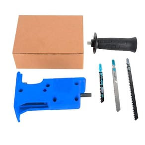 Adaptador para Transformar Furadeira em Serra tico-Tico Adaptador para Transformar Furadeira em Serra tico-Tico Adaptador para Transformar Furadeira em Serra tico-Tico. Para corte com diversos tipos de material: corte de madeira, corte de tubulação de aço, corte de plásticos, etc. - Adaptador para furadeiras de 3/8 e 1/2" - Diâmetro de aperto da haste de conexão: 5-13mm - Diâmetro da haste de conexão: 8mm - Diâmetro de corte: 0-120mm / 0-4.7in - Para corte com diversos tipos de material: corte de madeira, corte de tubulação de aço, corte de plásticos, etc. - Lâminas de serra podem ser rapidamente substituídas rotacionando o mandril sem desmontagem. - Confortável para segurar, fácil de operar, melhor experiência operacional - Feito de material de qualidade, prático, fácil de operar e usar, ampla variedade de aplicações, tem uma longa vida útil. - Material: abs + metal - Cor: Azul - Tamanho da embalagem: 150x110x55mm - Peso da embalagem: 300g - : 90 dias Itens inclusos: - 1 Adaptador de serra tico-tico para furadeira - 1 Punho lateral - 1 Lâmina de serra 150mm para madeira - 1 Lâmina de serra 135mm para metal - Lâmina de serra 100mm speed para madeira Ean: 7907054593683