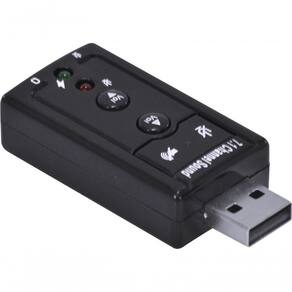 Adaptador Placa De Som Usb 7.1 Canais Virtual Ausb71 Descrição: Ideal para substituir sua placa de som on-board, ou quando sua placa de som não está mais funcionando. Dados Técnicos: Marca: Vinik; Modelo:AUSB71; USB key size 7.1 (virtual) - conecte seu fone de ouvidos e microfone (entrada P2); Suporte 3D sound virtual 7.1 ch; Possui controlador de volume, função mudo para microfone e saída de áudio; Alimentação com a energia da porta USB - nao precisa de fonte de energia externa ; Especificações: Conexão USB: 1.0/1.1/2.0; Led de indicação; Plug and Play; Conexões: P2 3.5mm; Compatibilidade: Windows/Linux/Mac; Dimensões: 5,7 x 2,5 x 1,4 cm; Ambiente de 7.1 canais virtuais; Plug and Play; 4 teclas de função; Características 2 x 3,5 milímetros microfone e alto-falante portas; Cor: Preto;