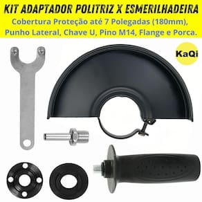 Adaptador Politriz Lixadeira Esmerilhadeira Kit Protetor Disco Chave Punho Auxiliar M14 Corte KaQi Kit Adaptador Politriz x Lixadeira Esmerilhadeira KaQi ADAP-POL-ESM. Para acessórios até 7 polegadas ou 180mm. O kit adaptador politriz KaQi chegou para transformar sua politriz em uma ferramenta versátil. Permite ampliar as possibilidades da sua ferramenta sem precisar comprar uma nova lixadeira ou esmerilhadeira. É um conjunto completo com cobertura protetora para acessórios de até 7 Polegadas ou 180mm, punho lateral angular, chave de aperto U, pino M14, flange e porca. Basta realizar o encaixe e aperto no eixo M14 da politriz, e já será possível utilizar inúmeros acessórios para uma infinidade de serviços, e, assim, resolver problemas de incompatibilidade da politriz com diversos acessórios essenciais para lixar, cortar e desbastar. Ao transformar sua politriz em uma ferramenta multifuncional, é possível economizar dinheiro, já que não precisará investir em múltiplas ferramentas. Ganha-se também, em versatilidade, pois irá realizar uma variedade de trabalhos, desde polimento fino até lixamento de superfícies, desbaste de materiais, cortes precisos utilizando o disco apropriado para cada função e material . Ainda, aumentar a produtividade, tendo sempre à mão, a ferramenta certa para cada etapa do projeto, otimizando tempo e esforço. Componentes do kit: 1 Cobertura Proteção até 7 Polegadas 180mm ; 1 Punho Lateral; 1 Chave U; 1 Pino M14; 1 Flange; 1 Porca. Medidas da caixa: 19 x 19 x 10cm. Peso total: 0,6kg. Modelo: ADAP-POL-ESM. EAN: 7908840106605. : 3 Meses. Marca KaQi. Não fazemos alterações posteriores em pedidos. Imagens do anúncio são ilustrativas. Marca: Não Informado Ean: 7908840106605