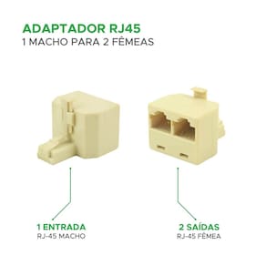 Adaptador RJ45 1 Macho x 2 Fêmeas 8P8C, ideal para dividir conexões de rede com praticidade. Indicado para ambientes domésticos ou corporativos.
