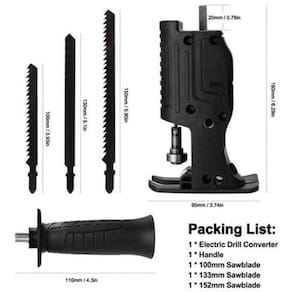 Esse adaptador consegue transformar sua furadeira ou parafusadeira em uma serra tico-tico. Praticidade e economia definem esse produto. Com troca rápida e fácil da lâminaEngate rápido de encaixe universal que aceita lâminas com qualquer tipo de encaixeExecuta cortes retos e curvos, rasgos, chanfros, cortes de imersão em Madeiras, metais e plásticosEmpunhadura resistente Itens inclusos: 1 Adaptador 1 Empunhadura 1 Lâmina 100mm 1 Lâmina 133 mm 1 Lâmina 152 mm Marca: Jonnes Distribuição