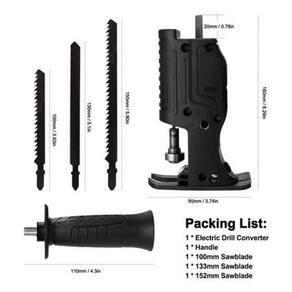 Esse adaptador consegue transformar sua furadeira ou parafusadeira em uma serra tico-tico. Praticidade e economia definem esse produto. Com troca rápida e fácil da lâminaEngate rápido de encaixe universal que aceita lâminas com qualquer tipo de encaixeExecuta cortes retos e curvos, rasgos, chanfros, cortes de imersão em Madeiras, metais e plásticosEmpunhadura resistente Itens inclusos: 1 Adaptador 1 Empunhadura 1 Lâmina 100mm 1 Lâmina 133 mm 1 Lâmina 152 mm Marca: Jonnes Distribuição