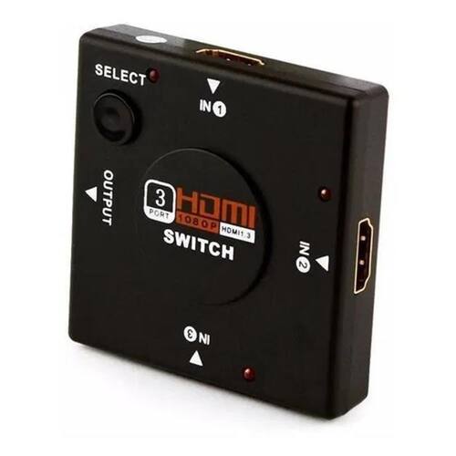 Adaptador Switch 3x1 Divisor 3 Portas 1080p Hdmi Mb Tech Switch HDMI 3 Portas 1.4 onde você poderá conectar até 3 equipamentos HDMI em uma única porta HDMI na sua TV.