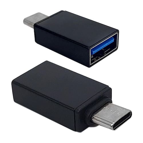 Conector tipo-c macho Conector usb 3.0 fêmea Permite conectar pendrive, mouse, teclado, webcam, impressora em smartphone, tabletes, notebooks e macbooks com entrada tipo-c e função otg. Cor: preto Homologação Anatel: 109062214103
